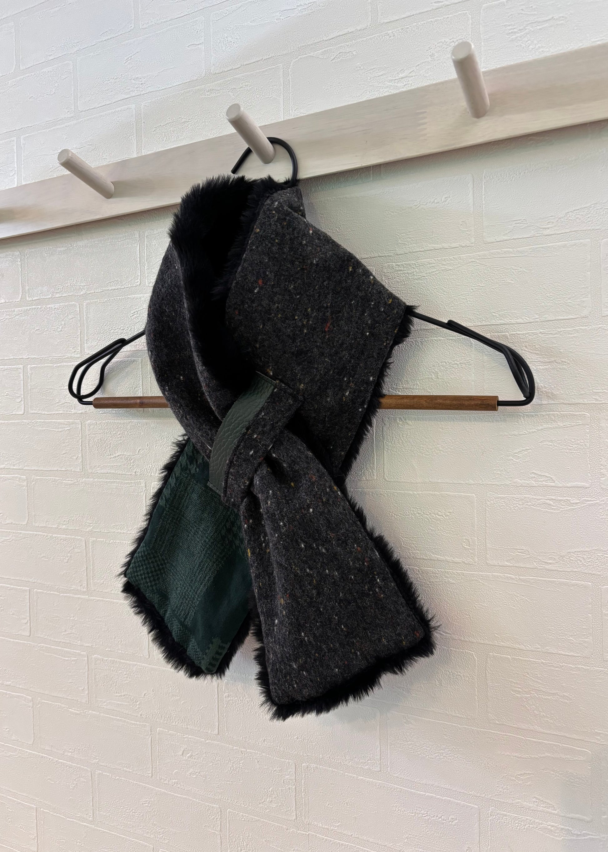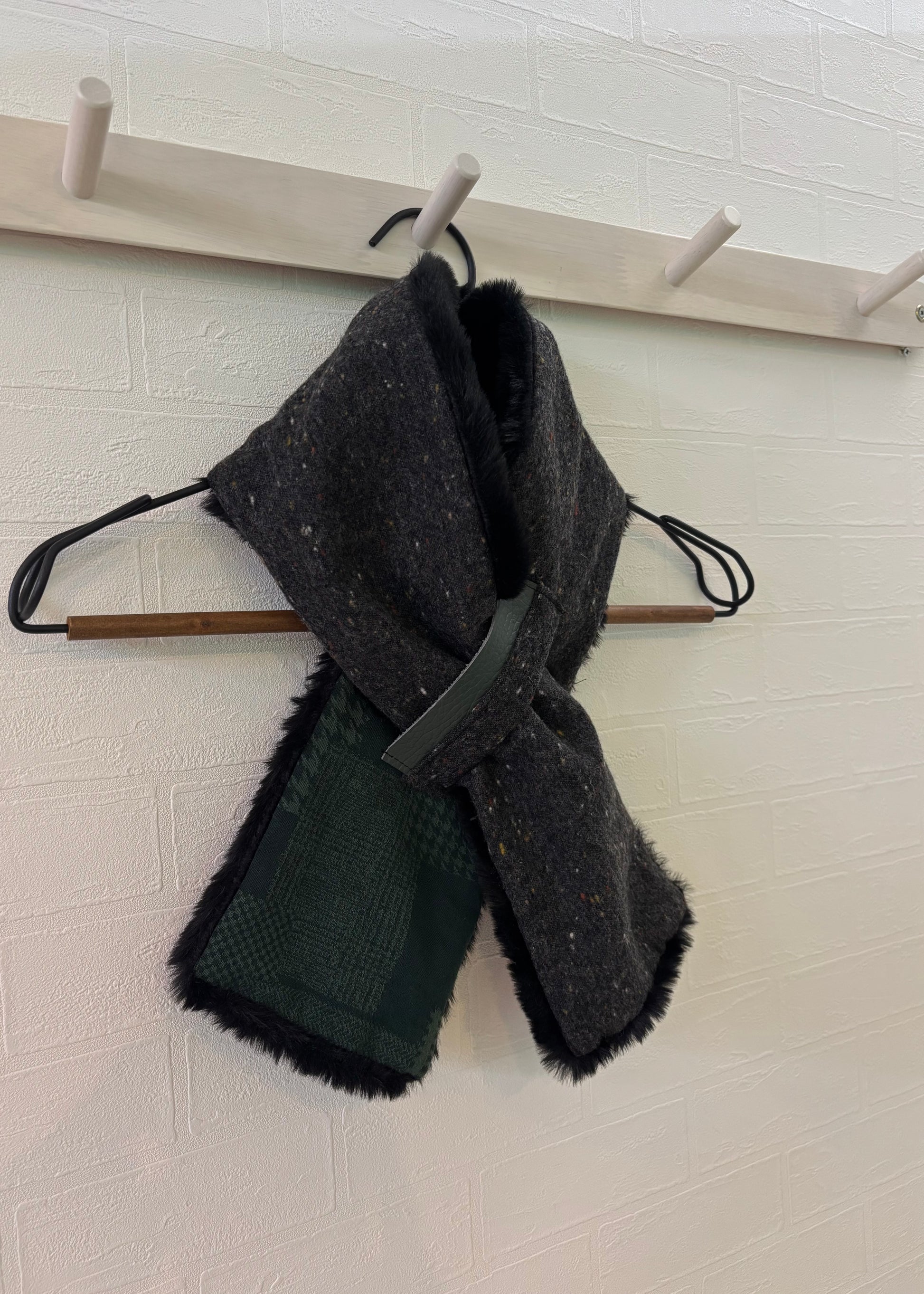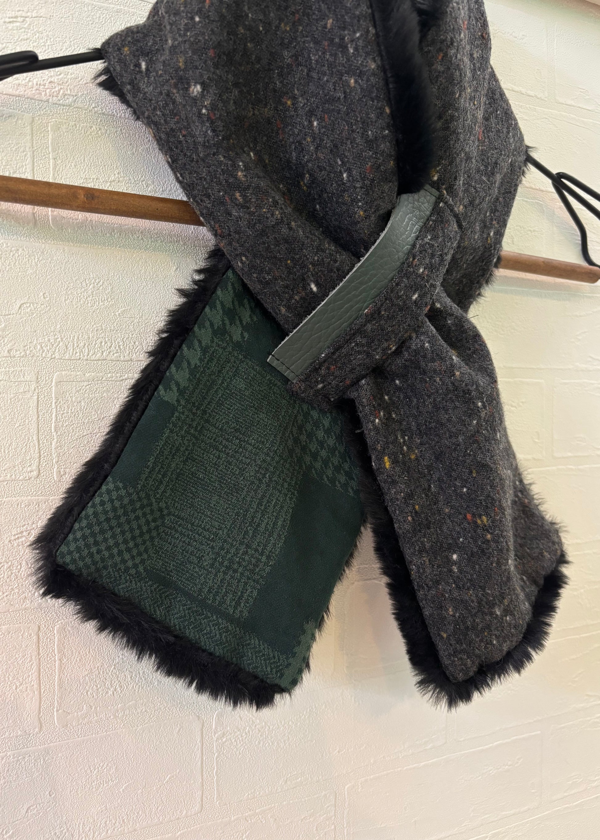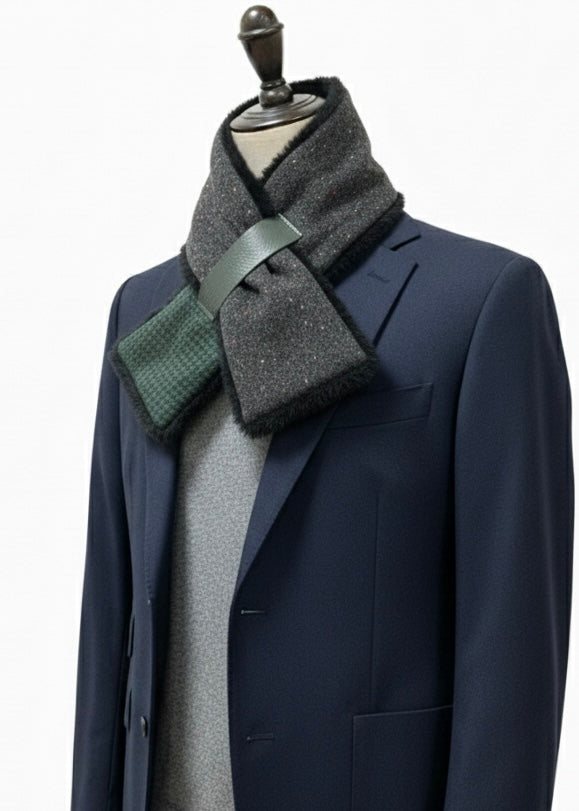 播州織✖️フェイクラビット⭐️1点ものマフラー⭐️クリスマスプレゼント⭐️通すだけで上品。冬の首元に大人の余裕を