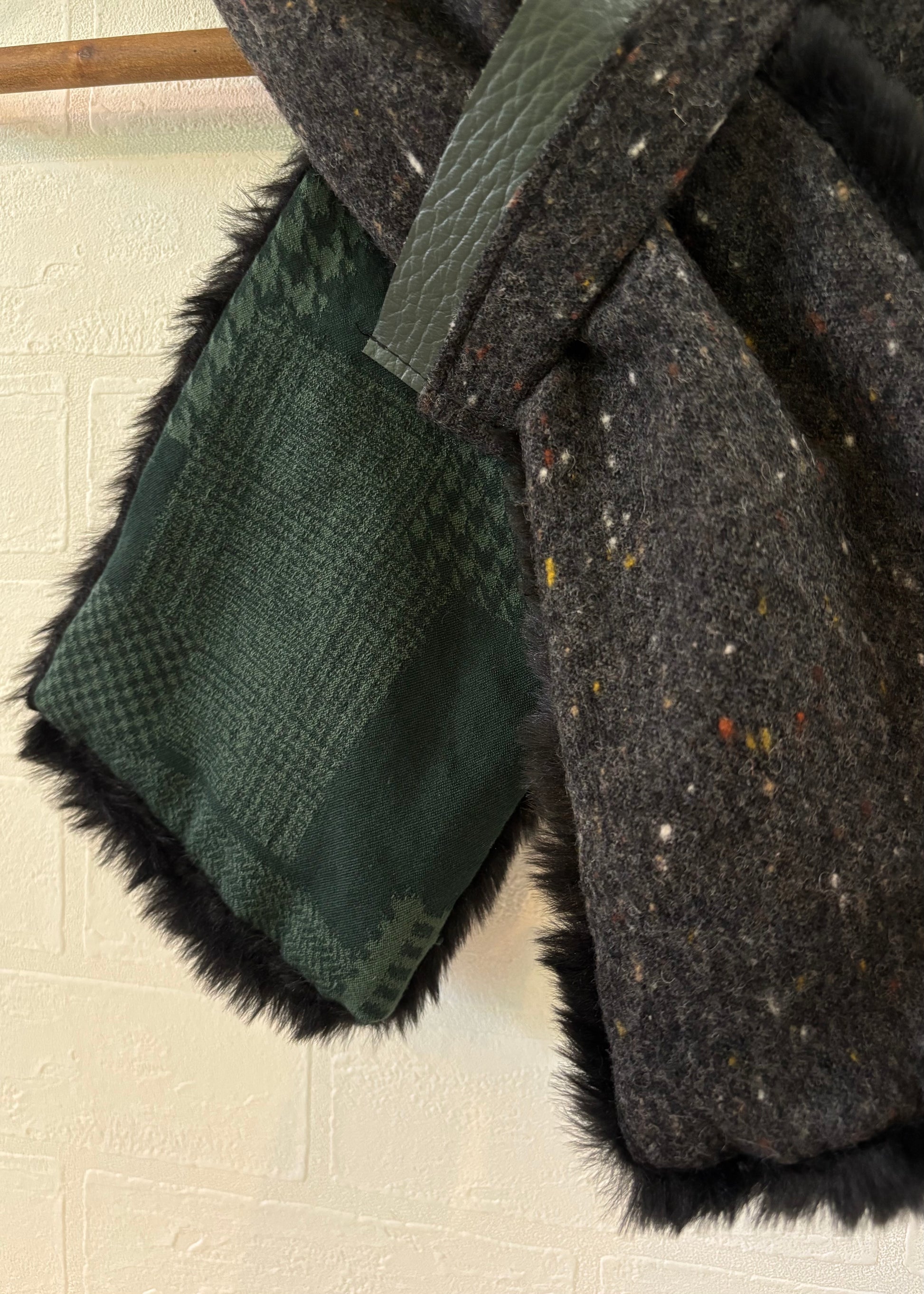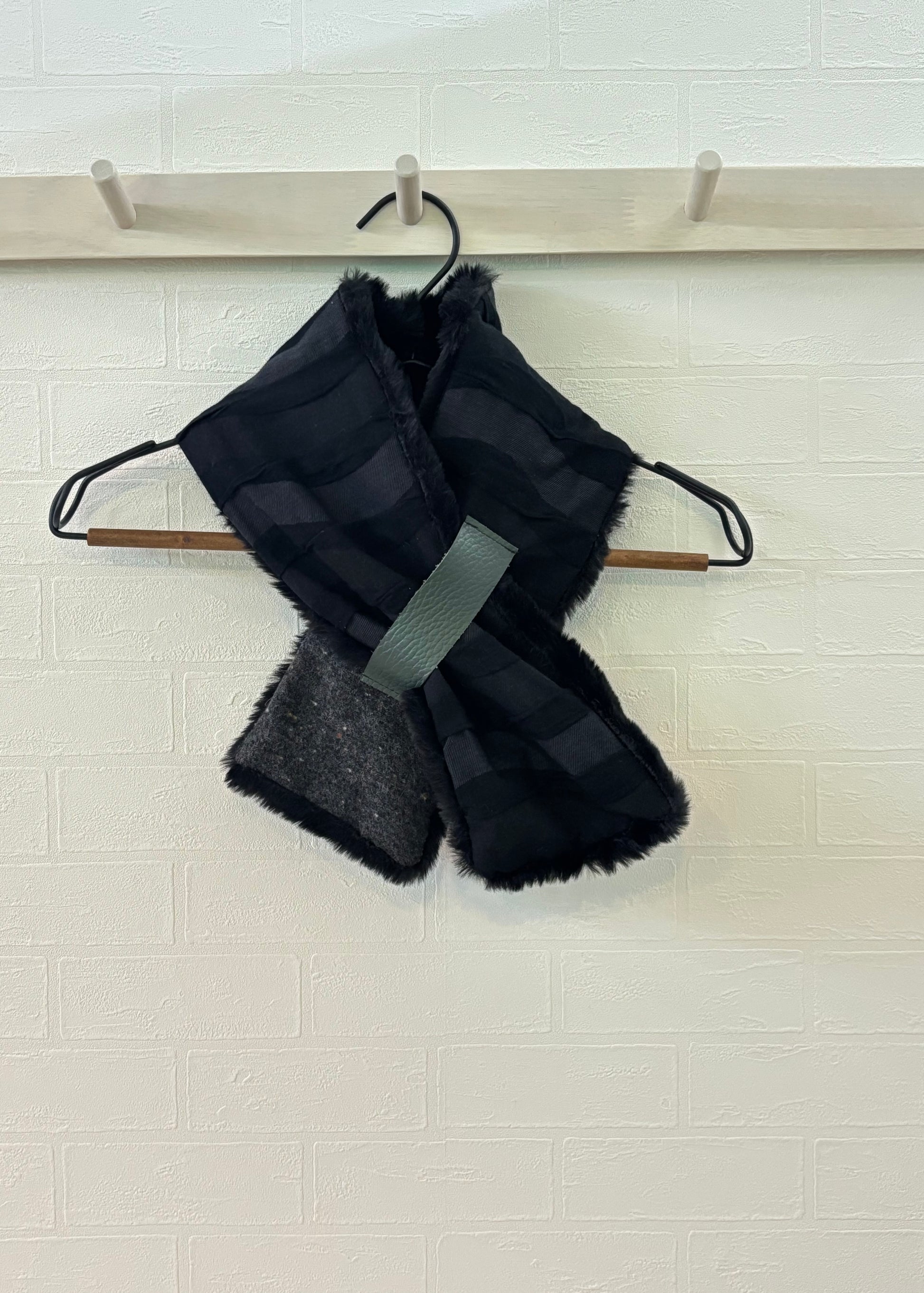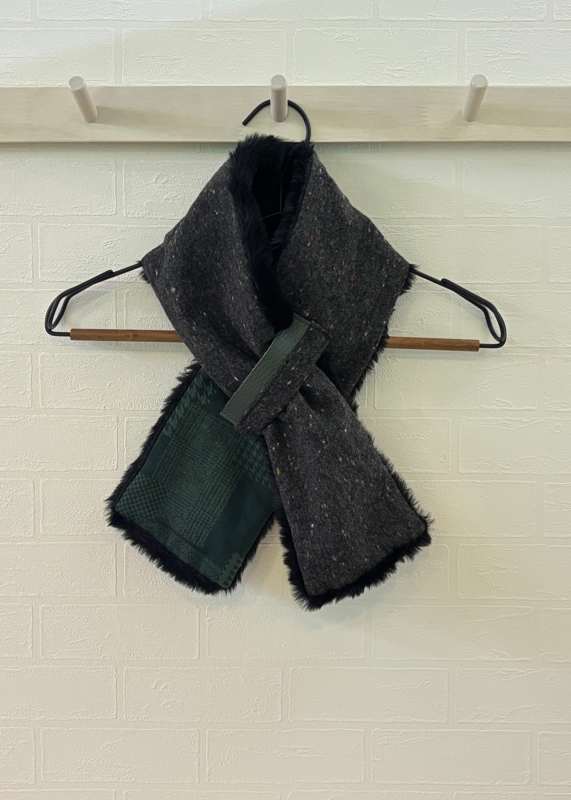 播州織✖️フェイクラビット⭐️1点ものマフラー⭐️クリスマスプレゼント⭐️通すだけで上品。冬の首元に大人の余裕を
