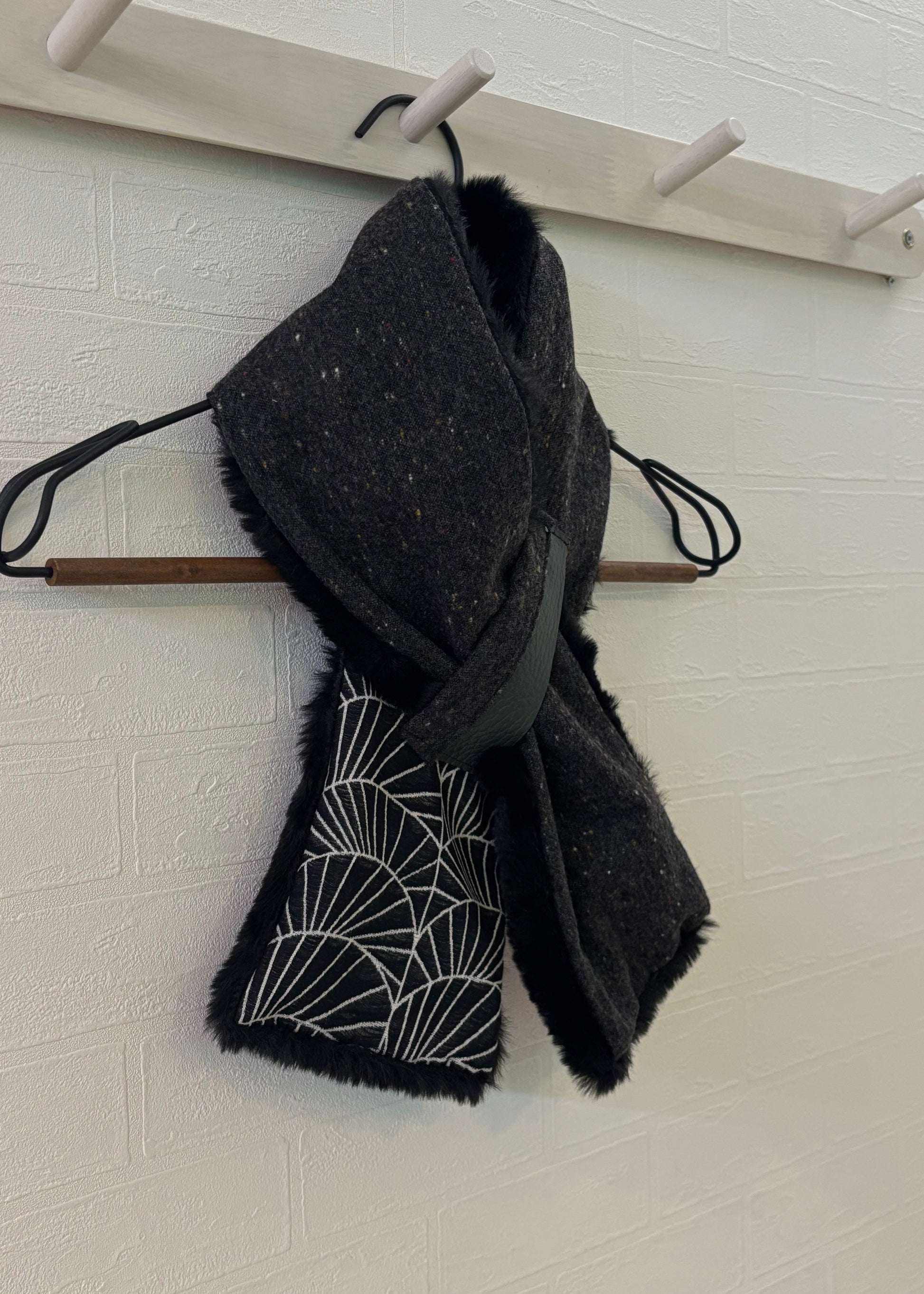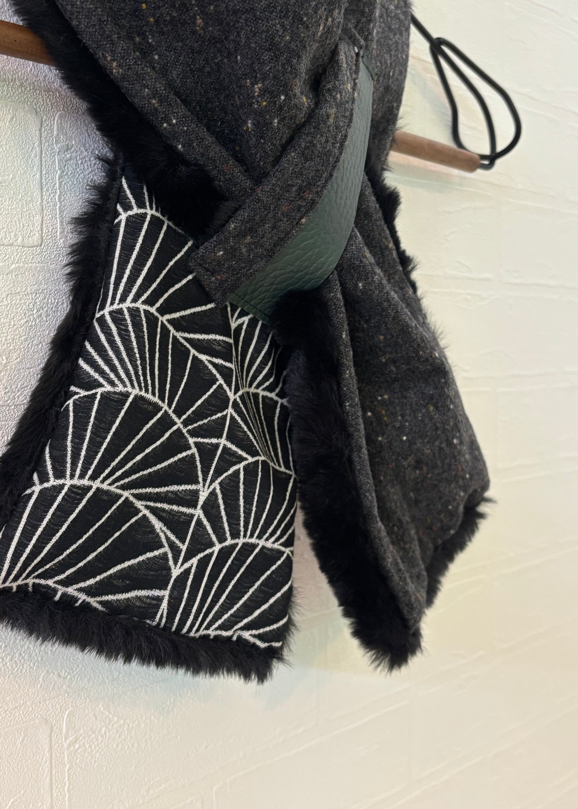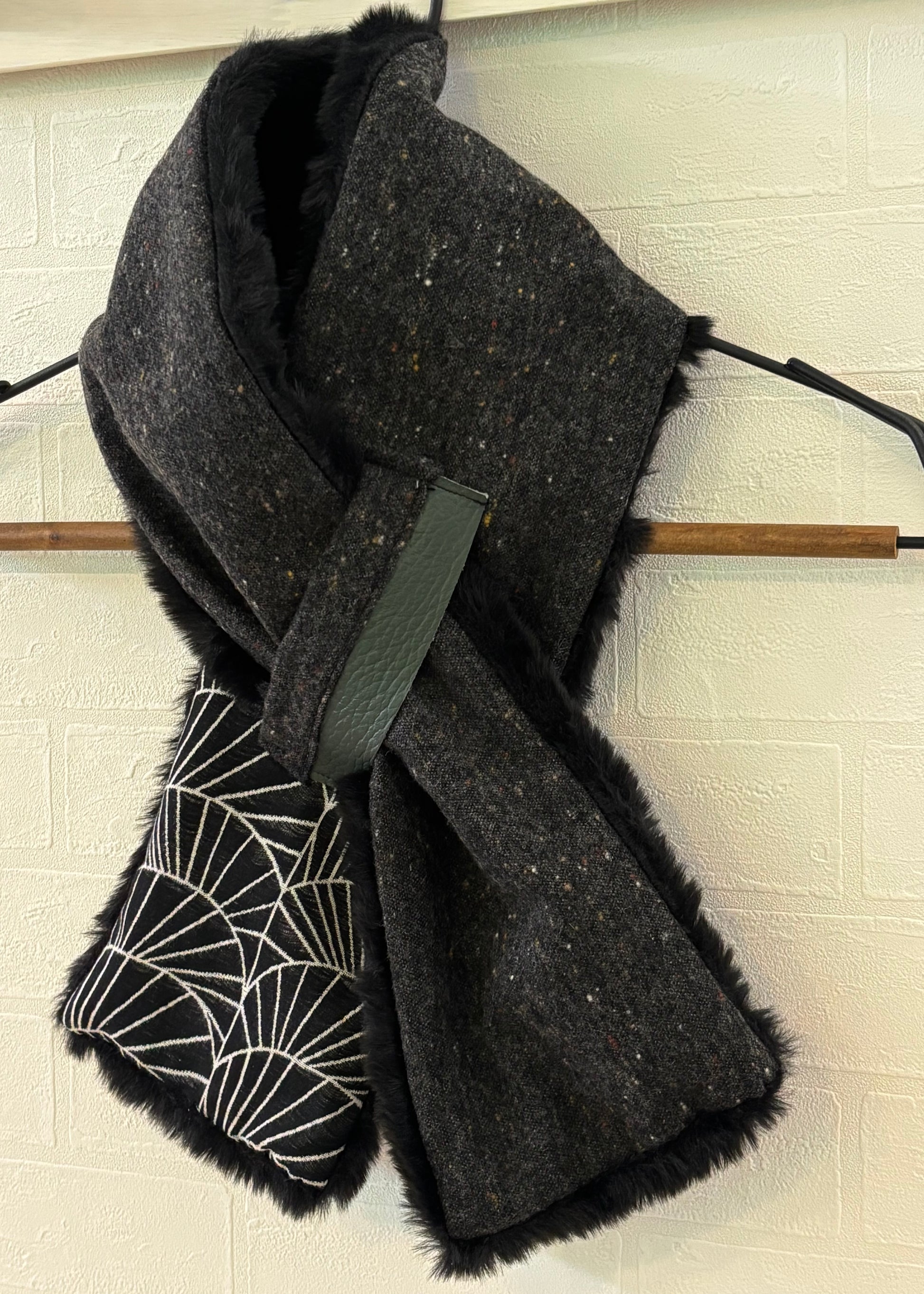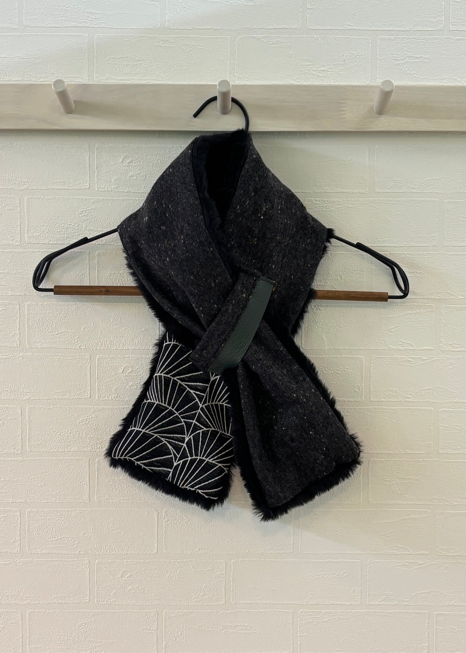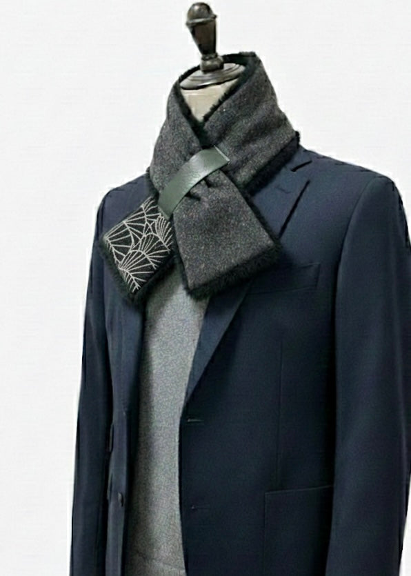 播州織✖️フェイクラビット⭐️1点ものマフラー⭐️クリスマスプレゼント⭐️通すだけで上品。冬の首元に大人の余裕を