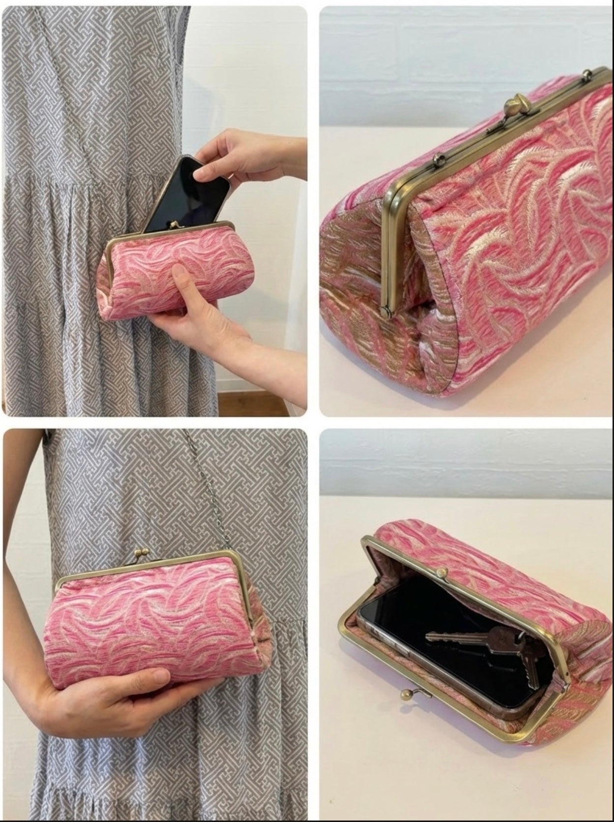 別売りのロングチェーンを取り付ければ斜め掛けとしてもお使いいただけます。