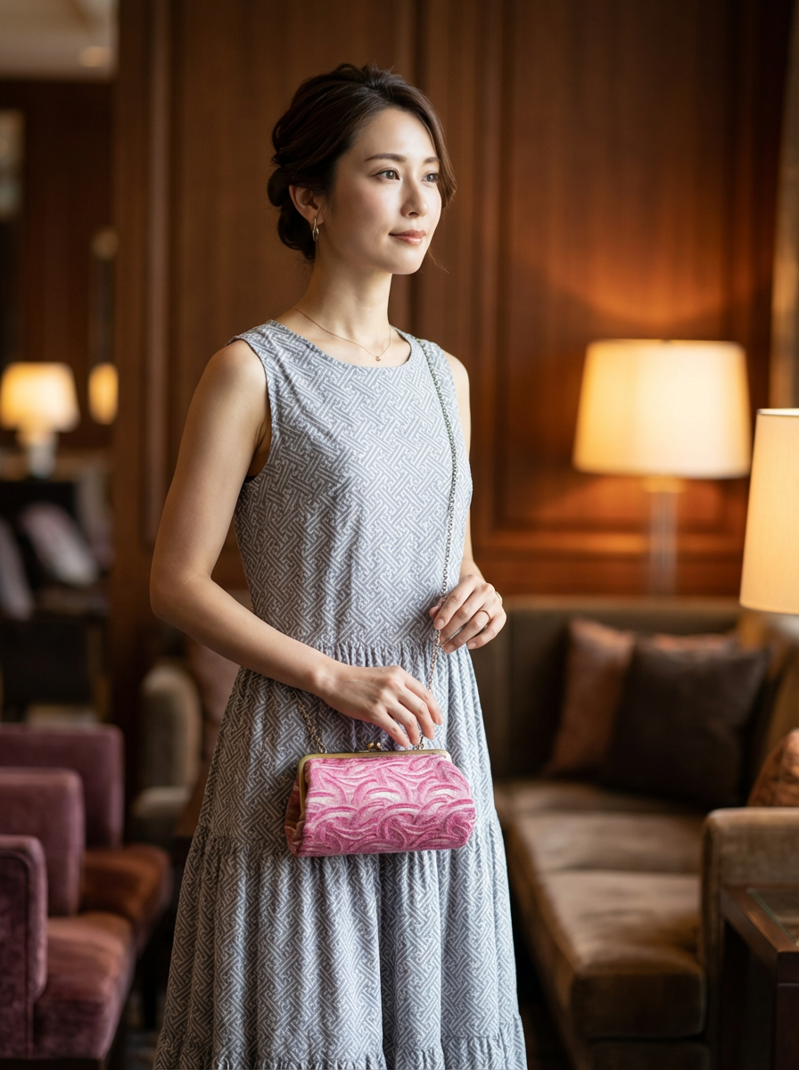 日常のお出かけから、少しきちんとしたシーンまで、装いにやさしい華やぎを添えてくれる一品です。