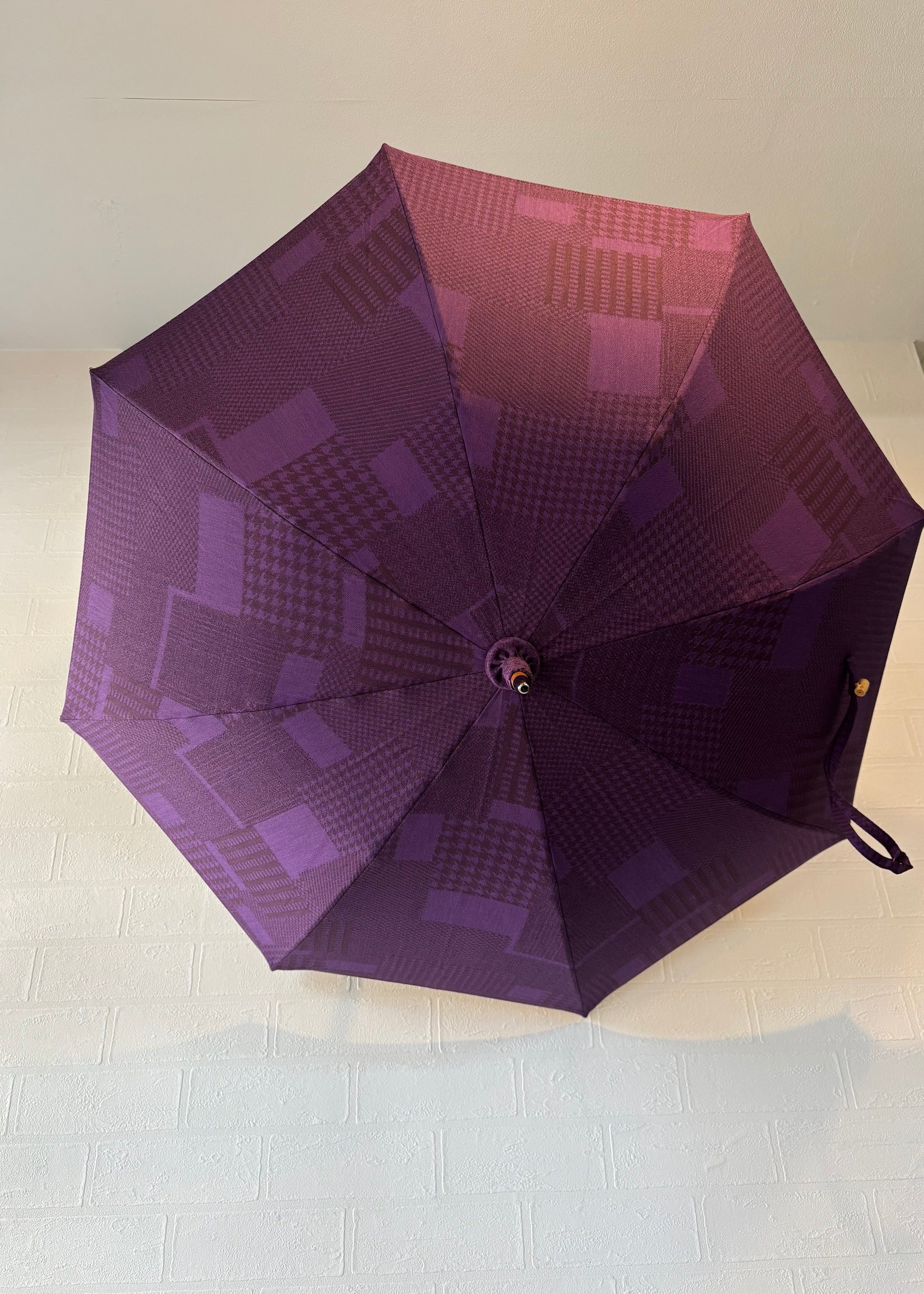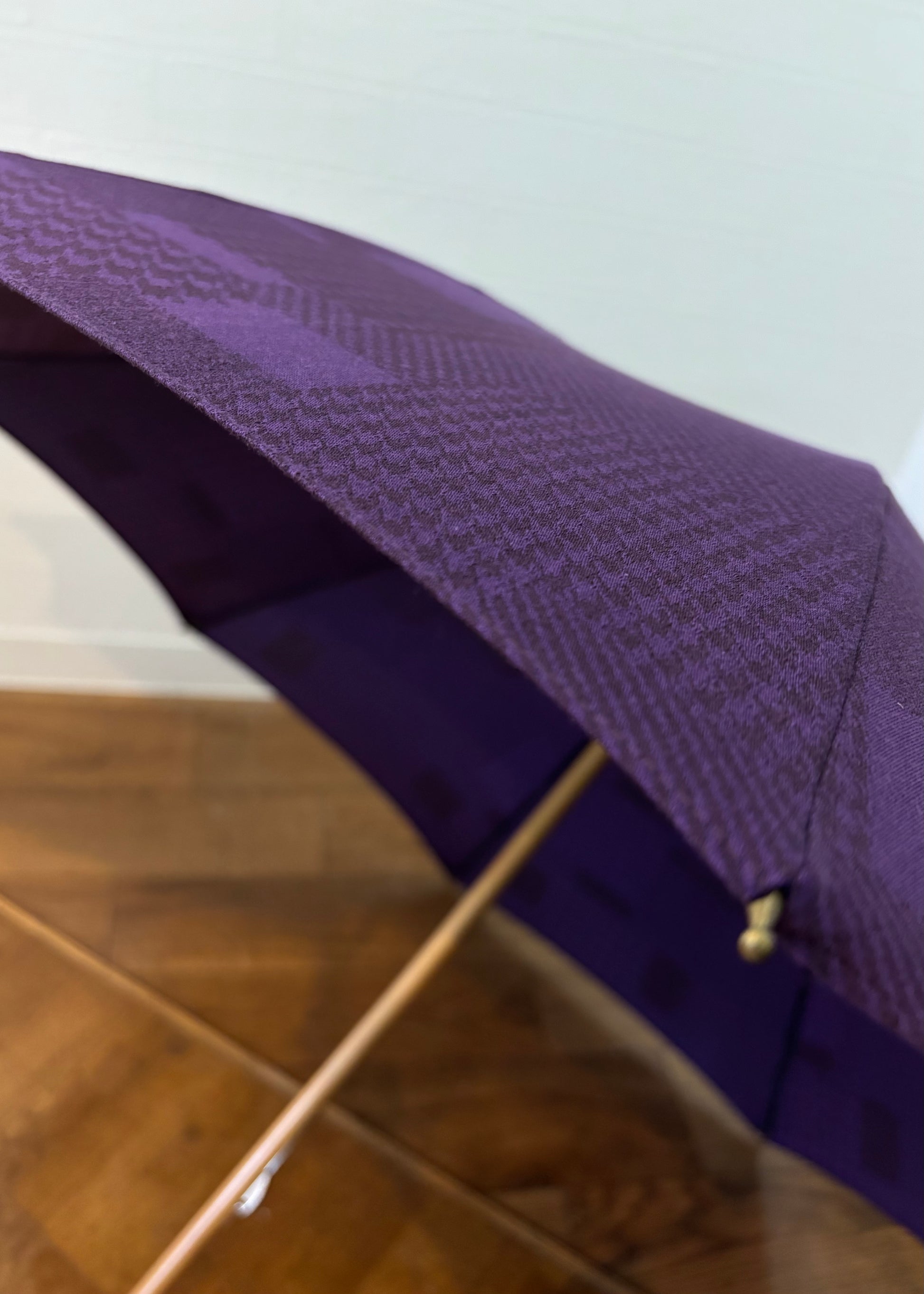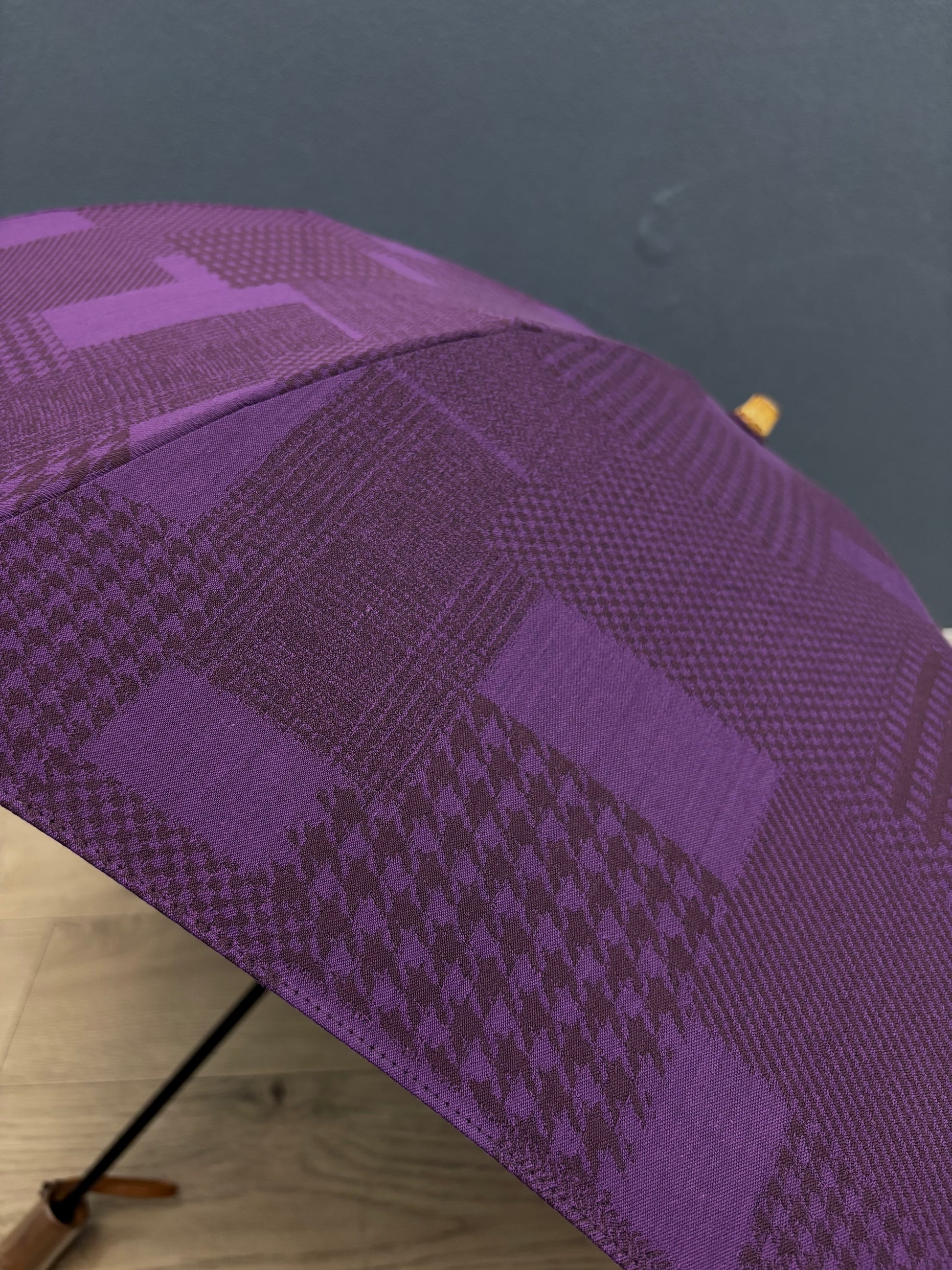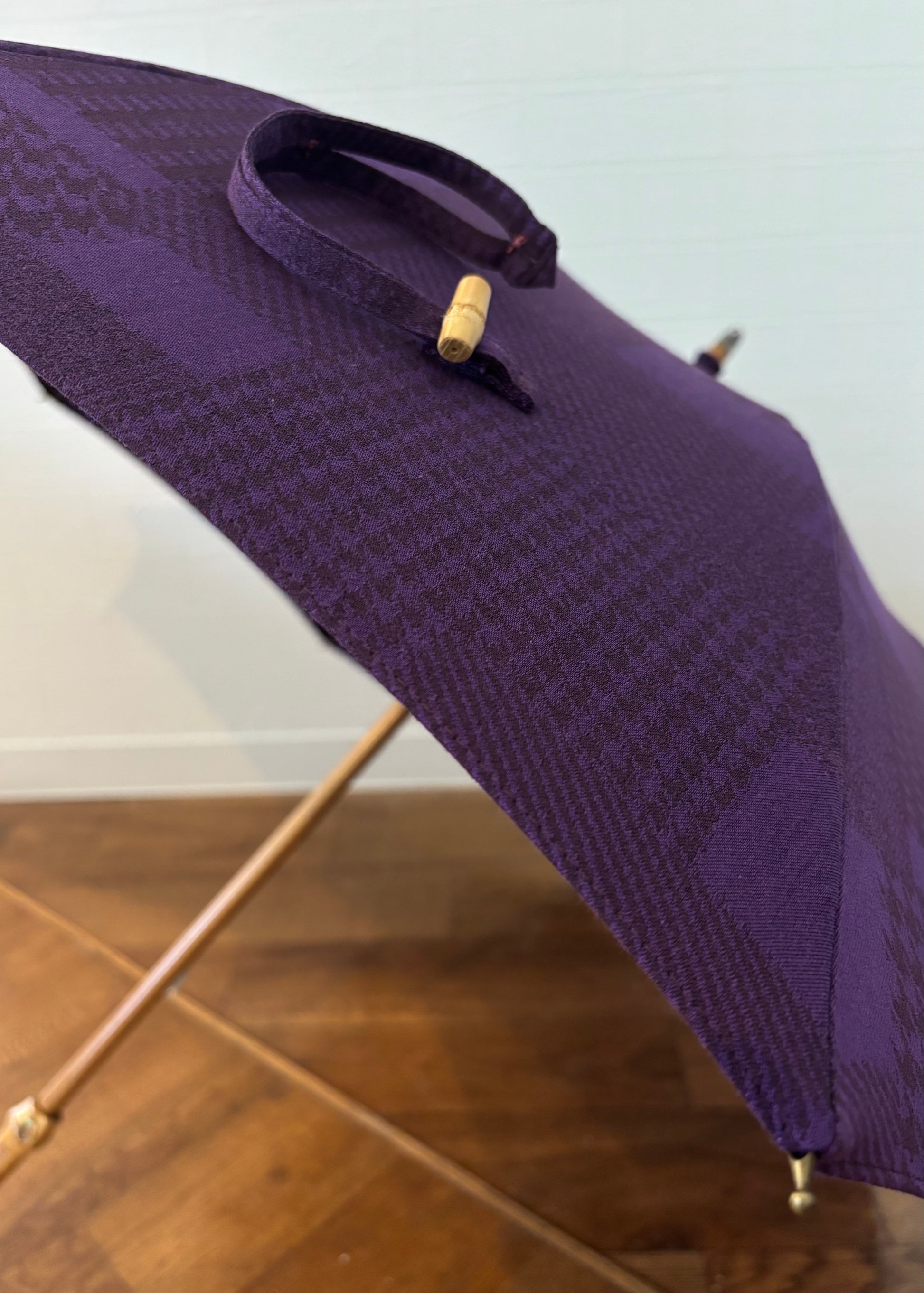 深みのある紫を基調に、異なる織柄が静かに重なり合うデザイン。
