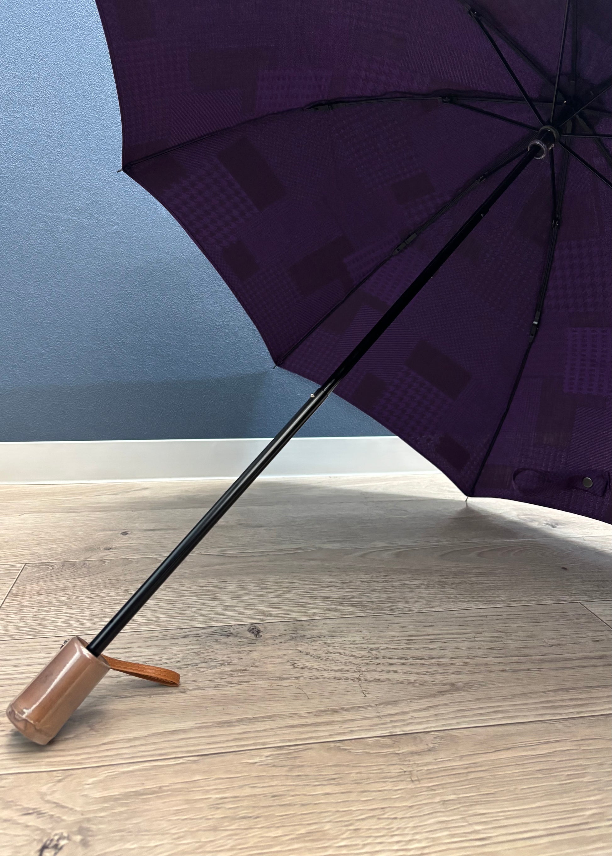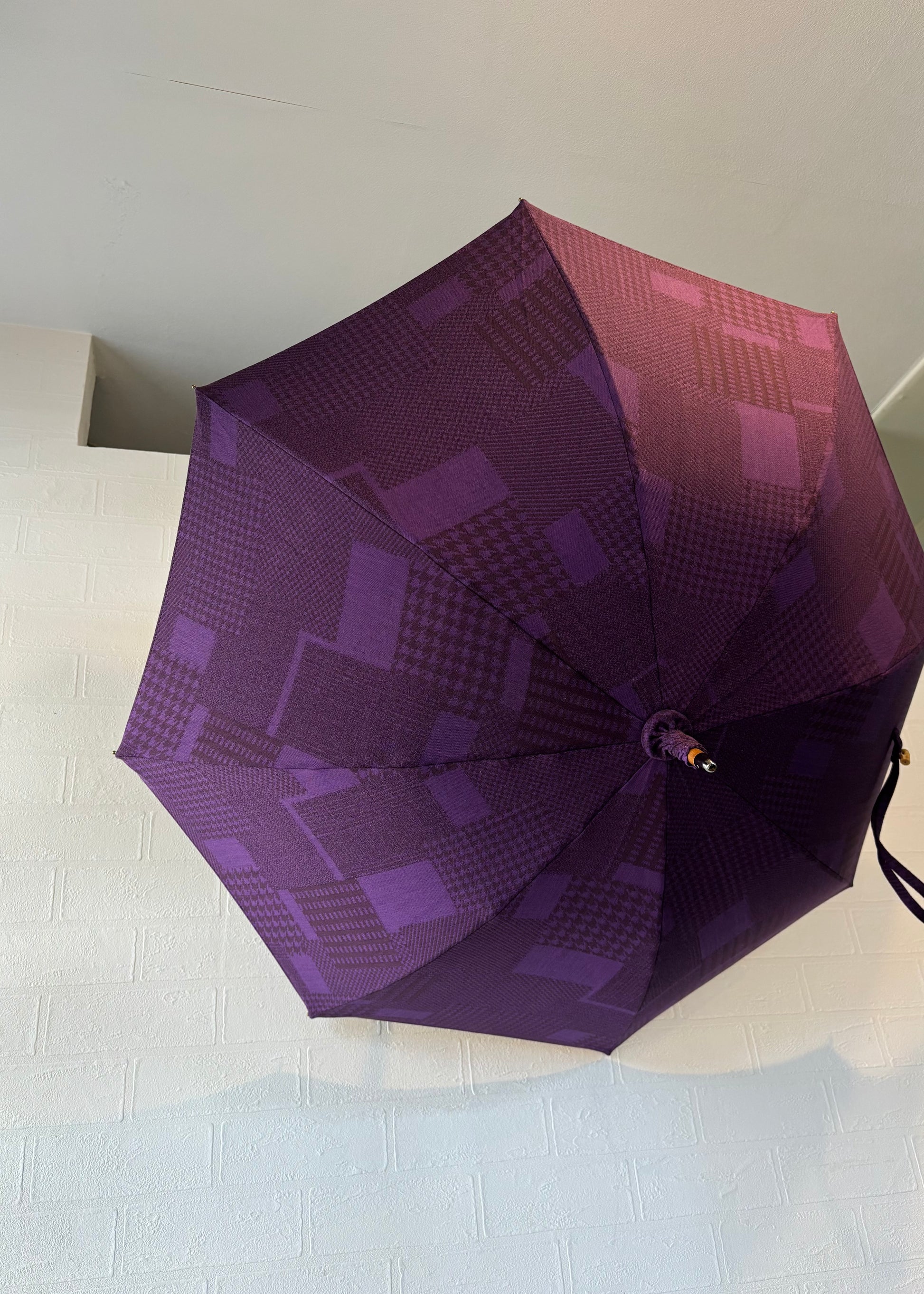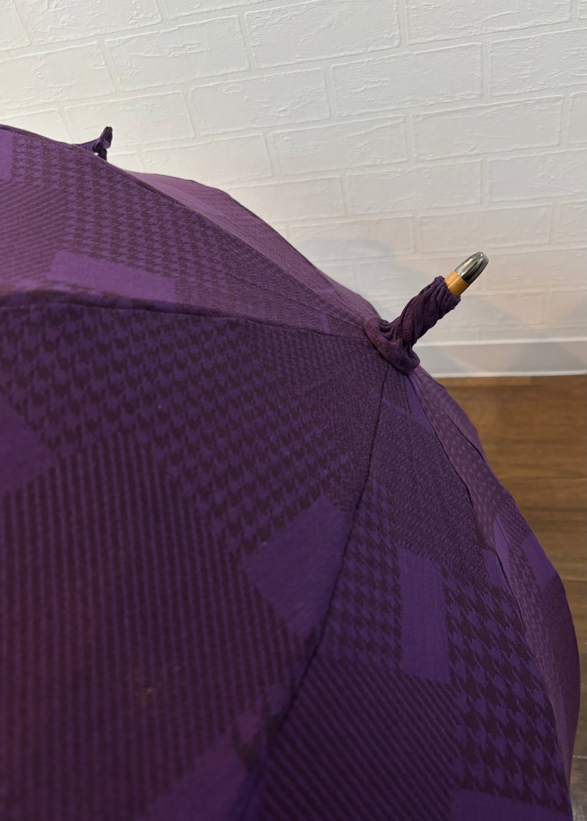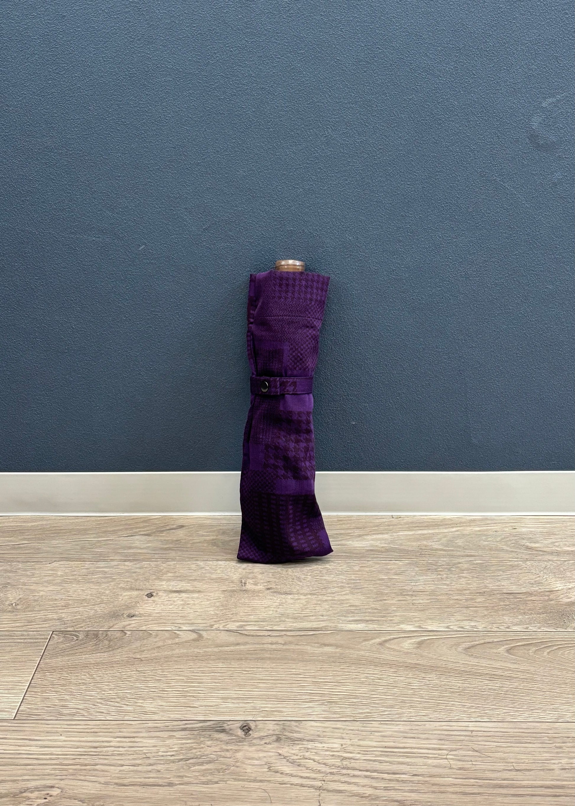 深みのある紫を基調に、異なる織柄が静かに重なり合うデザイン。